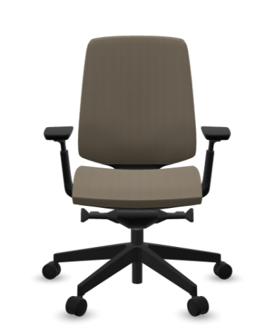Gestoffeerde zitting en rugleuning, stof Alba kleur Beige (EVO002). Zitdiepte instelling, gewichtsregeling. Inclusief armleggers in hoogte en breedte verstelbaar. Lendensteun in hoogte en diepte verstelbaar. Zwart kunststof onderstel met wielen voor harde vloeren.